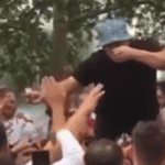 If there were awards for this medium, this would surely bring them all home: not only does it boast the requisite fan-climbs-tall-structure aspect, as well as a chant of “He’s doing packet”, but it all happens within about ten feet of a police van.